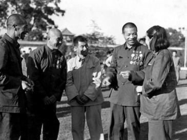 1954 年9 月15 日至28 日,一届全国人大一次会议在北京召开。图为梁军(右一)与出席会议的几位农业劳动模范
