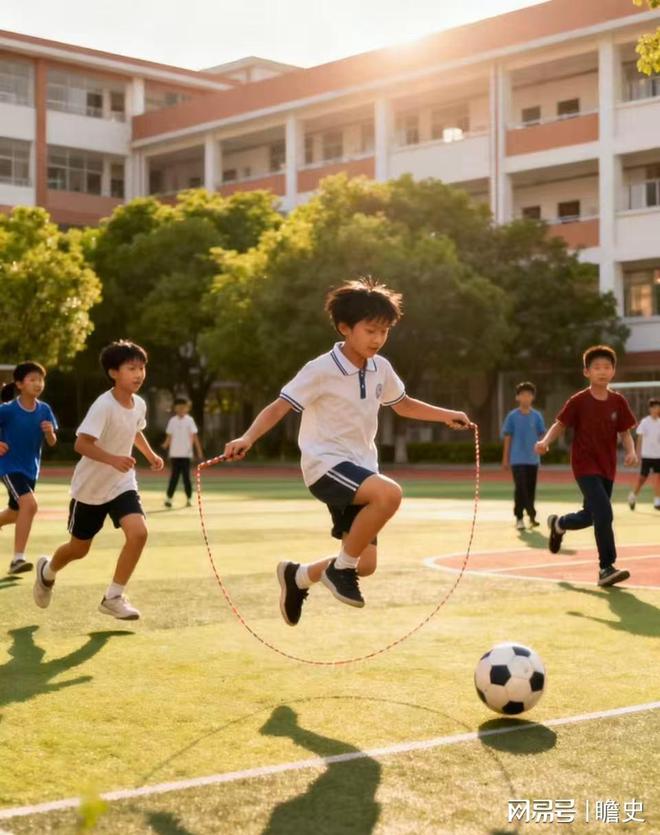 操场上总是充满了欢声笑语。年轻的学生们在跑道上追逐,在草坪上翻滚,体育老师的哨声清脆而响亮。