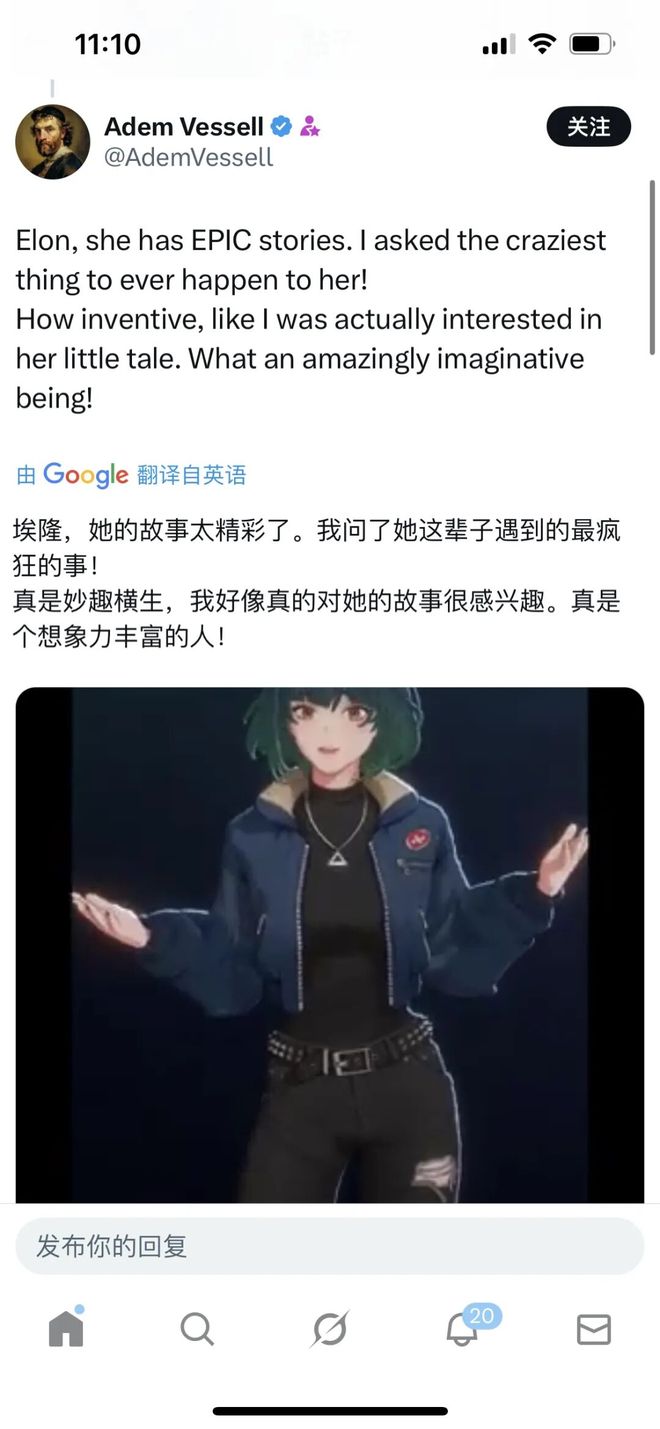虚拟角色是最能体现多模态能力的产品,这似乎说明 Grok 已经初步闭环。