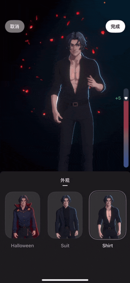 和 Ani 一样外形在线块腹肌的 Valentine。他的一举一动几乎都在耍帅,还有个“Level 3”模式,一键直达 NSFW。