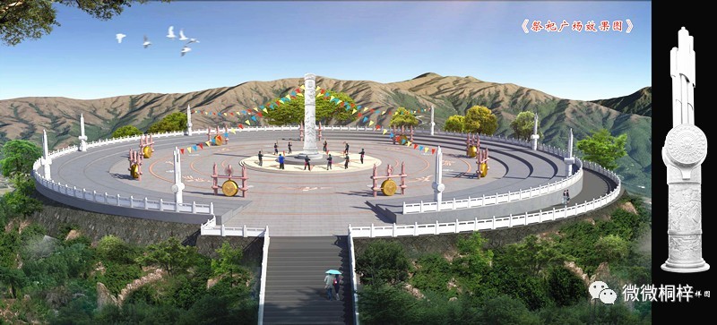 祭祀广场,感受红苗文化:广场成圆形,直径61米,面积2920.985平方米,地面由天然花岗岩铺就。广场中央矗立祭祀圆柱,石柱由汉白玉雕刻而成,柱身刻有红苗文化图腾,高9.88米,直径1.7米,祭祀圆柱周围分别竖立9根由汉白玉雕刻的芦笙柱,每根柱高4.99米,直径0.8米,9只直径为1.5米的铜鼓分布在广场周围。