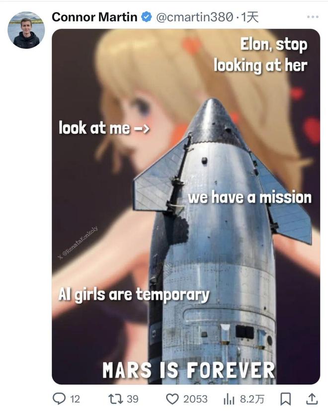 有网友在帖子下玩梗,让马斯克别只顾着发AI Girls,偶尔也要关注真正的“mission”。