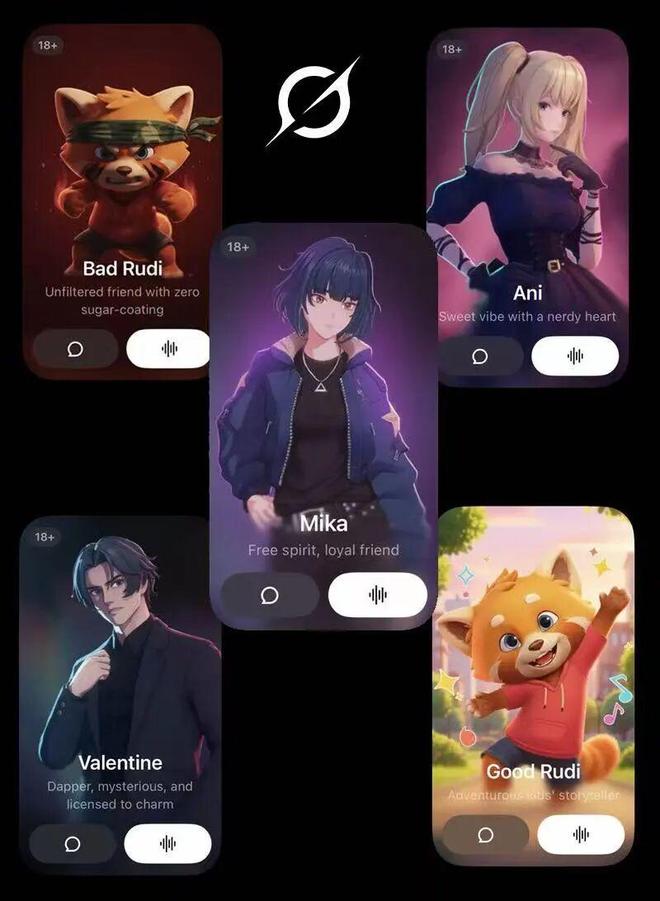 看样子,Grok 的两个女性虚拟角色,一个是要收割宅男,一个是要成为更多人的伙伴。