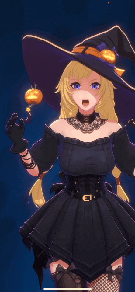 在最新的造型中,Ani 换上了一身万圣节华服,头顶硕大的南瓜帽子、脚蹬招牌,背后还“长出”一双翅膀。